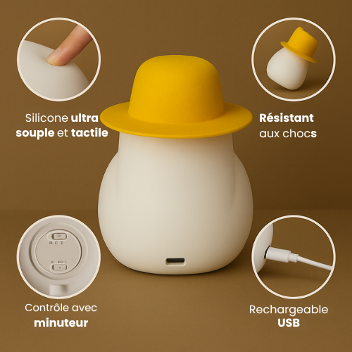 Billy est assis paisiblement, plongé dans ses pensées, coiffé d’un charmant petit chapeau qui ajoute une note ludique et sophistiquée à votre décoration. La veilleuse Billy est votre compagnon plein de charme qui diffuse sérénité et douceur, créant une ambiance apaisante et joyeuse chaque nuit.