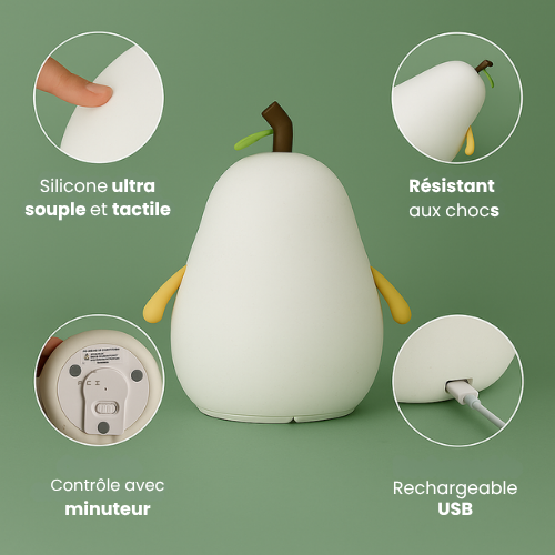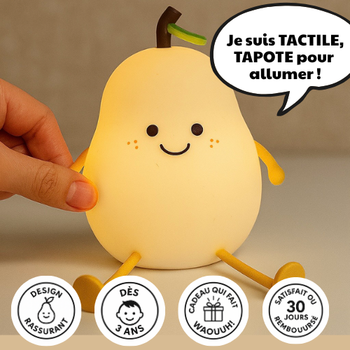 Inspirée d'une poire jaune joyeuse, Clara arbore de petites jambes pendantes, un visage attendrissant et une feuille verte sur le dessus qui apporte une touche naturelle et colorée.