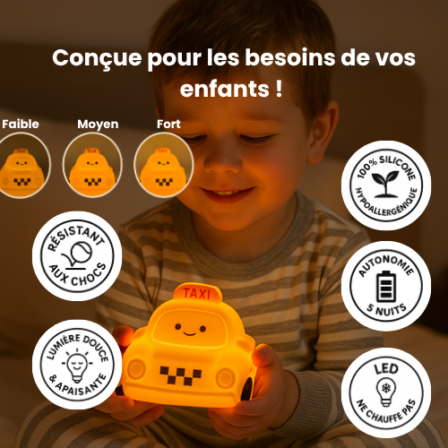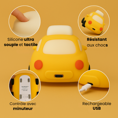 Joe, c’est le taxi jaune qui file tout droit vers le pays des rêves. Avec sa bouille souriante, ses roues prêtes à rouler toute la nuit et son petit panneau lumineux "TAXI", il embarque les dodos pour un voyage tout en douceur.