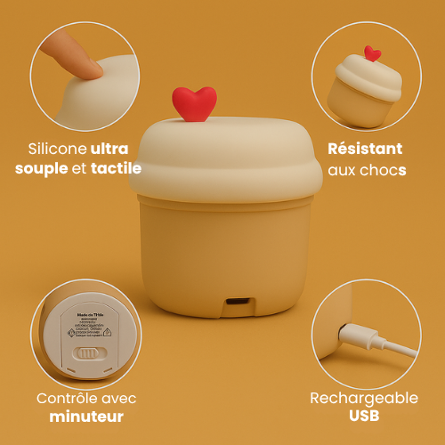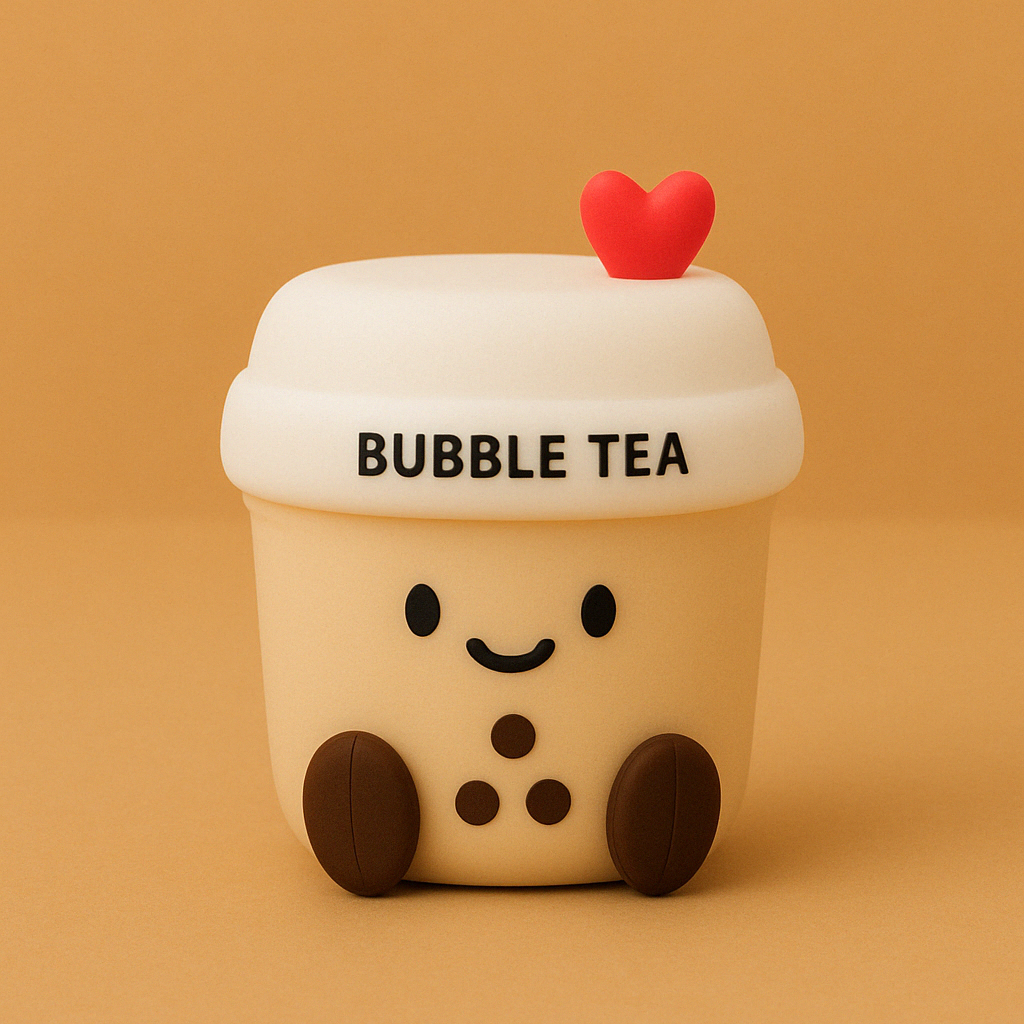Moka, c’est le petit Bubble Tea lumineux au sourire fondant et aux perles bien rondes. Coiffé d’un couvercle crème et d’un cœur rouge tout doux, il réchauffe les nuits comme une boisson sucrée pleine d’amour.