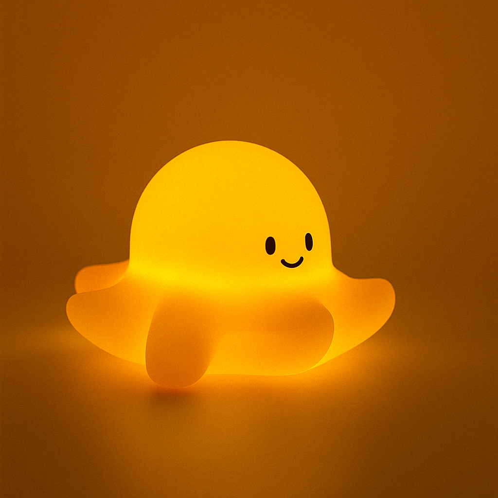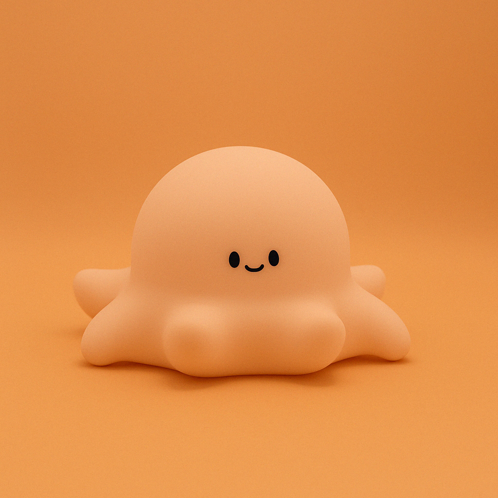 Rosie, la pieuvre rose, éclaire les nuits avec ses tentacules câlins et son sourire apaisant. Toujours prête pour un plongeon dans les rêves, elle nage doucement vers le pays du sommeil.